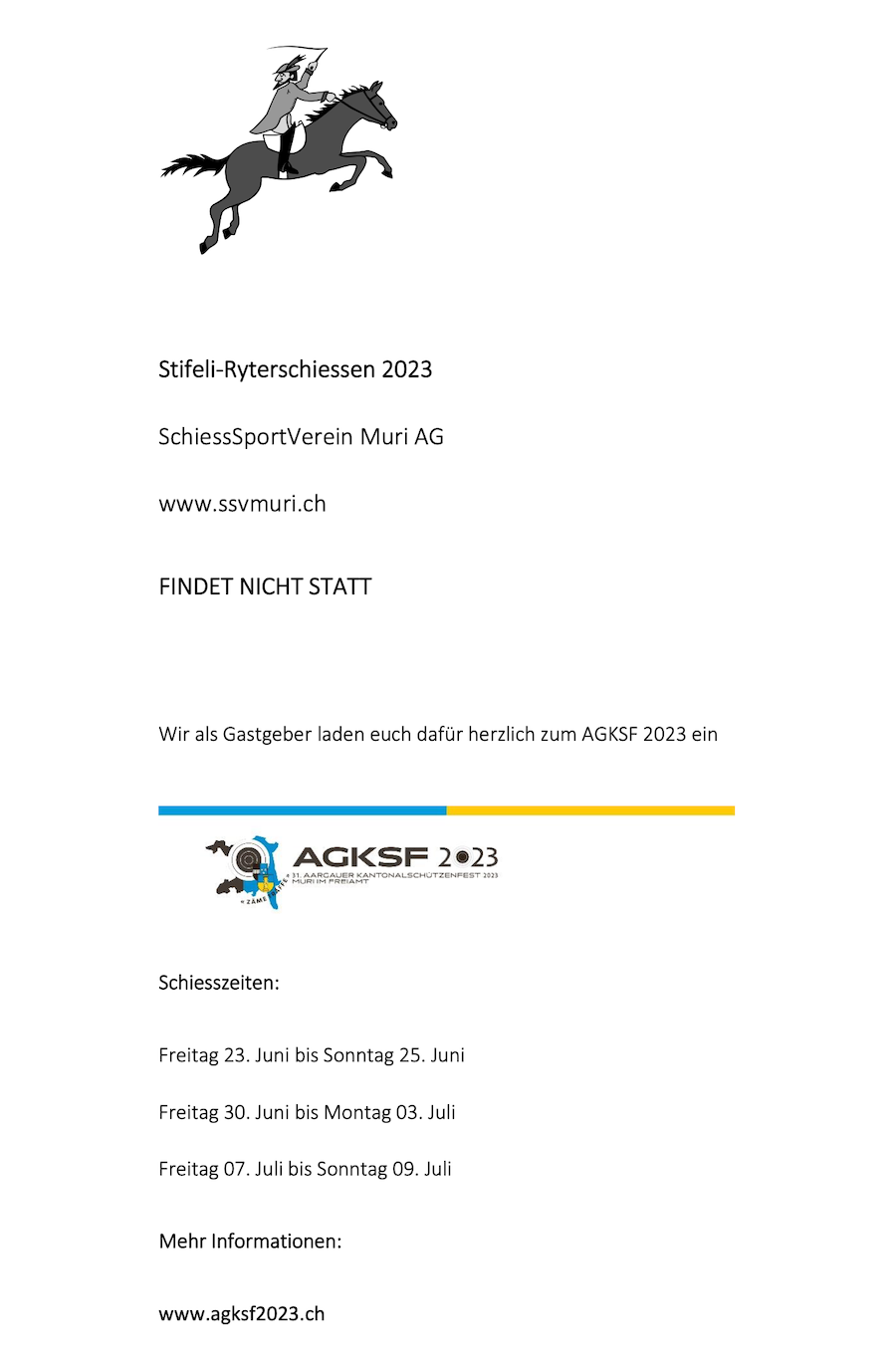 Aufgrund des AGKSF 2023 findet dieses Jahr kein Stiefeliryterschiessen statt: