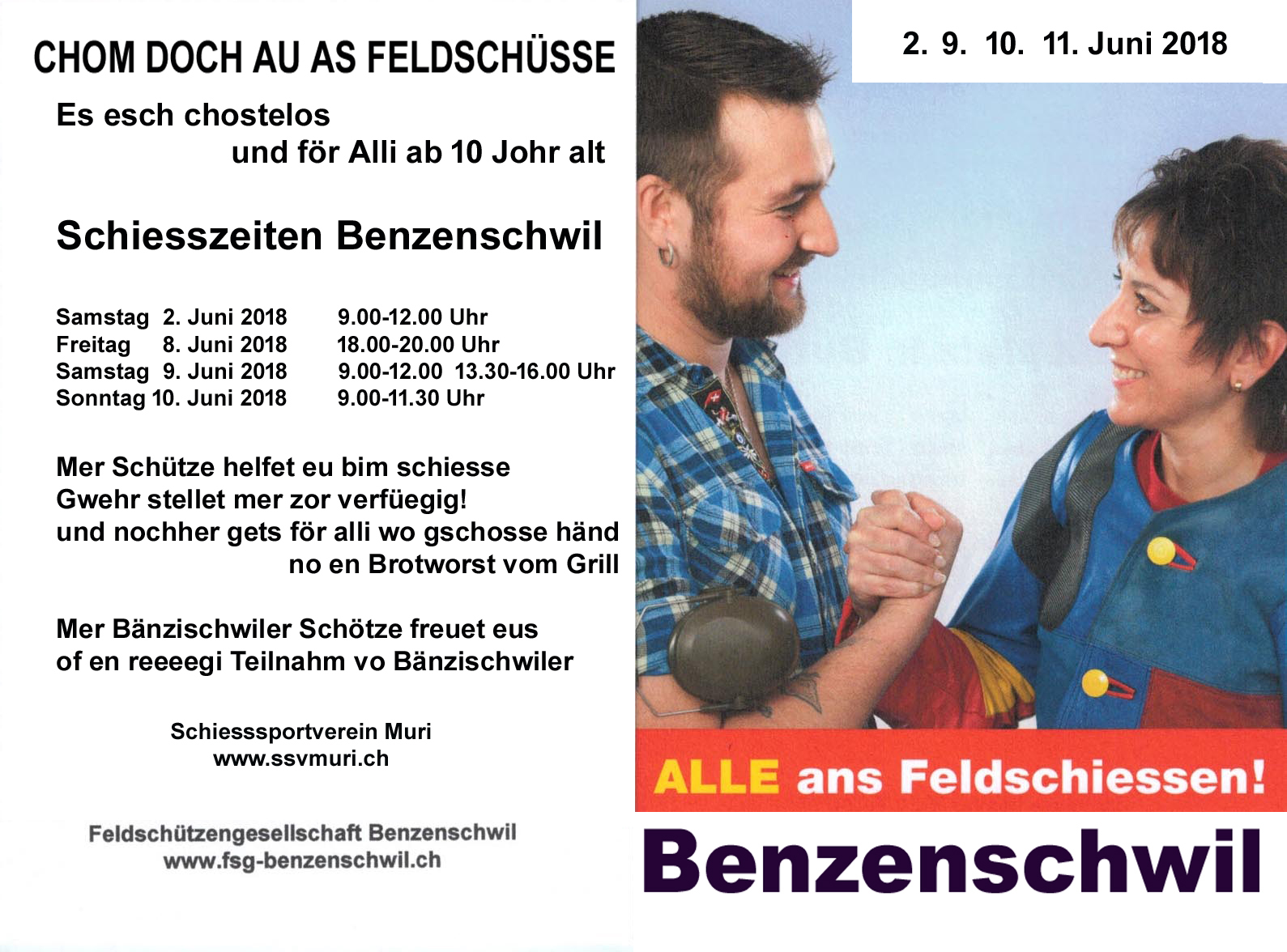 Die FSG Benzenschwil und der SSV Muri bieten Jugendlichen im 2019 wieder einen gemeinsamen Jungschützenkurs zusammen mit den Schiessvereinen von Merenschwand und Aristau an. Weitere Informationen finden Sie hier: